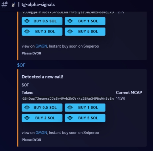 Al igual que en Twitter, también podrás snipear tokens que se compartan en Discord en cualquier canal y comunidad de la que formes parte.
