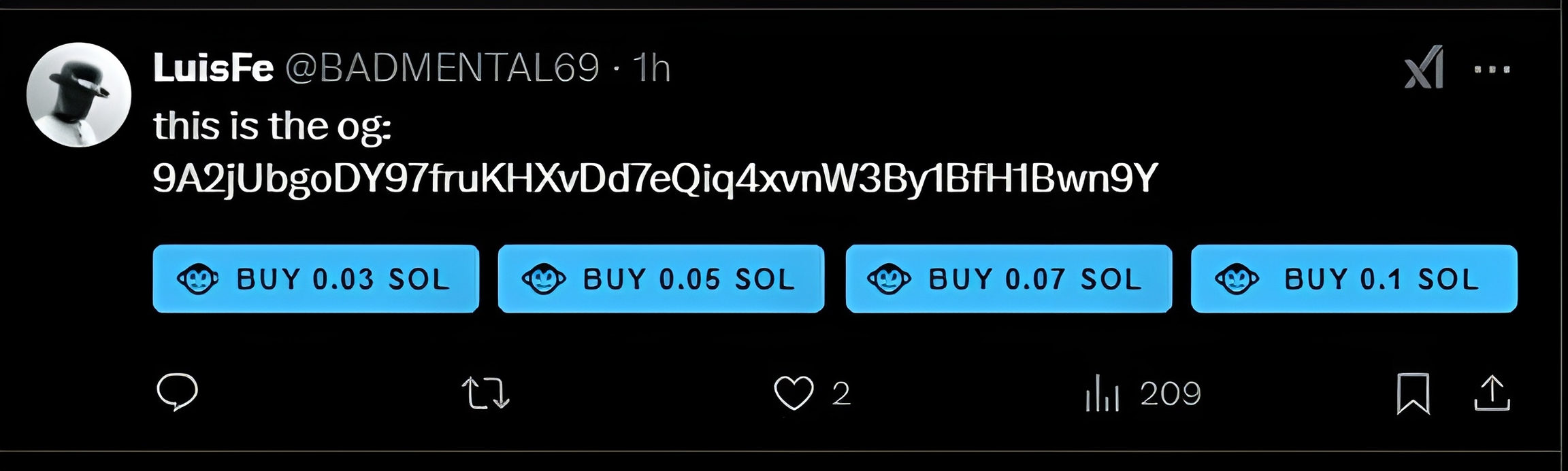 Cada vez que encuentres una CA en Twitter/X, la extensión te mostrará tus 4 botones de compra preestablecidos, permitiéndote comprar tokens tan pronto como veas que se publica la CA.