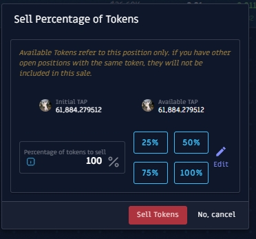 Cuando haga clic en el botón Vender, aparecerá una ventana emergente de venta en la que podrá seleccionar la cantidad de fichas que desea vender.