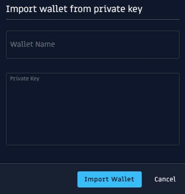Otra forma de añadir un monedero a su cuenta Sniperoo es importando un monedero que ya posea, utilizando el botón «Importar monedero desde clave privada»: