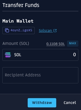 Seleccione la cantidad de SOL que desea retirar (utilice el botón MAX para retirar todo el saldo)